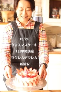 ショートケーキをつくるための基本作業(スポンジは自分で焼く・生クリームも自分で泡立てるなど)や基礎知識 (材料の選び方・型サイズ・焼き時間など)が網羅されています ので、当日1台切らずにお持ち帰りして おうちで楽しんでいただけるだけでなく、 今後、お誕生日やお祝い・クリスマスなどで定番のお菓子にできる絶品レシピ。なので、「おうちでもひとりでこれからも作っていきたい」、と考えられていて、 初めてのクリスマスケーキに挑戦する方に特におすすめです。