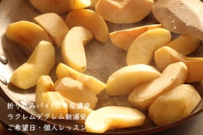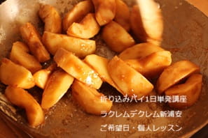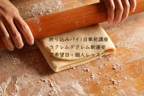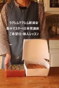 知らぬまま卒業。自分ひとりでは、すべてがあやふやで、復習するにも大変な感じがありました。今回個人レッスンで丁寧に教わりたいと思い、2講座受講にお見えになりました。タルト生地では、あえて機械でする方法で。のし方は